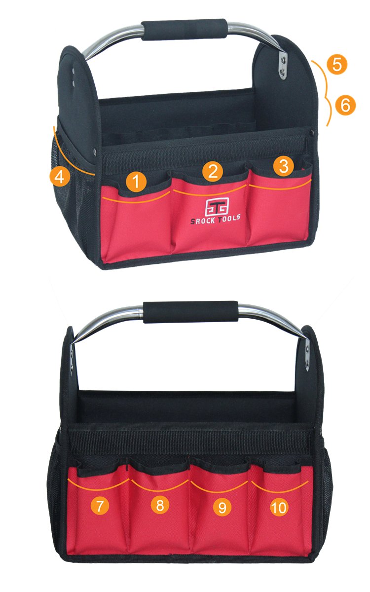Die Werkzeugtasche SR22804 ist praktisch und benutzerfreundlich gestaltet. Durch das offene Tote-Design haben Sie schnellen und einfachen Zugriff auf Ihre Werkzeuge und können die Arbeit problemlos erledigen. Die robuste Konstruktion sorgt dafür, dass Ihre Werkzeuge geschützt und sicher sind, egal wohin Sie sie mitnehmen.