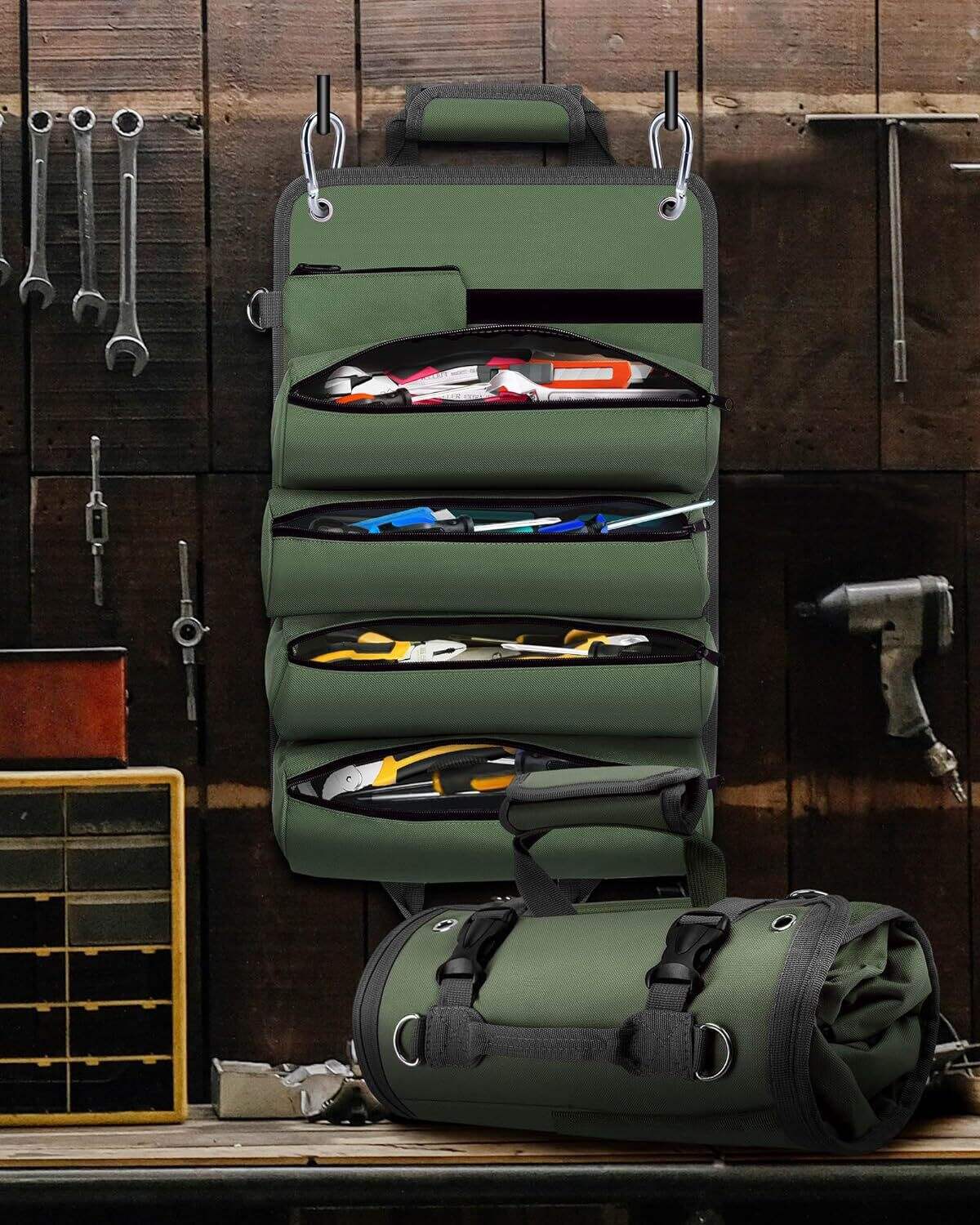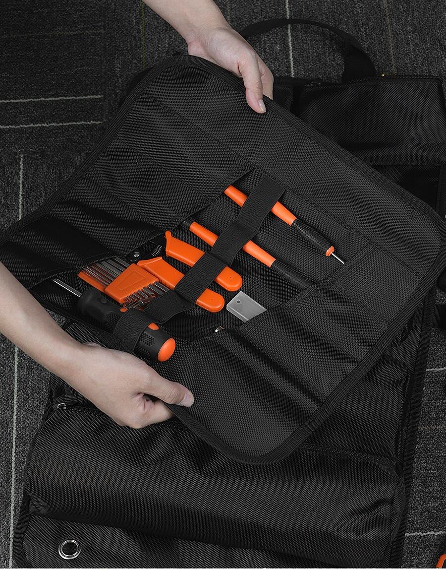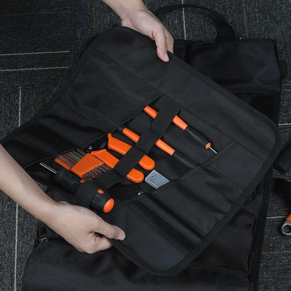 Mit einem verstellbaren Hüftgurt kann diese Werkzeugtasche bequem um die Taille getragen werden, sodass Ihre Hände frei bleiben und Sie effizient arbeiten können. Die Hüfttasche ist außerdem mit robusten Schnallen und Reißverschlüssen ausgestattet, die einen sicheren Verschluss und jederzeit einfachen Zugriff auf Ihr Werkzeug gewährleisten.