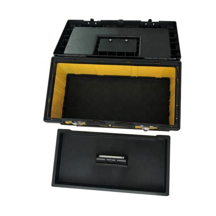 Ar savu eleganto un moderno dizainu šis rīku kaste ir ideāla rīku kārtībai un uzglabāšanai garāžā, darbnīcā vai būvlaukumā. Cietā plastmasas konstrukcija nodrošina aizsardzību jūsu rīkiem, kamēr noņemamais daļu panums padara vieglu visu kārtības uzturēšanu un pieejamību.